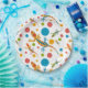 Paper party plates with colourful gecko design created by Alan Skyrme.