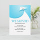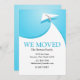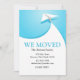 Announce your move with this fanciful moving announcement that everyone is sure to remember. It features a blue background with a white paper plane and white exhaust trail.