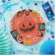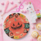 It's halloween party design celebrating the upcoming Halloween. This hand-drawn kawaii and fun illustration features halloween characters, vampire, pumpkin, frankenstein, grim reaper, werewolf, skeleton, ghost and pumpkin.