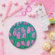 Paper Plate featuring colourful floral painting, emerald green field full of beautiful spring flowers. Pink tulips symbolise a feeling of happiness, self-confidence and positivity. This artwork fits great for Easter or Woman's day greetings, or as birthday gifts for girls and women.