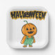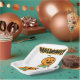A playful design that brings Halloween vibes to the party! The paper plate features the classic Halloween symbol titled "Spooky Fun Halloween!" The centre is written in a bold, intimidating font, with a fun mix of jagged and smooth letters. The plate can also have subtle patterns like candy corn for an extra festive flair.