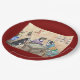 Original Watercolor of Mahjong Dogs on a deep red paper plate