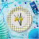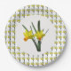 Daffodils - two yellow and orange blossoms, on white background. Small image is multiplied, surrounding central white circle, where a larger blossom with stem and leaves is the central point. . ***Part of coordinated set - BKM1o.