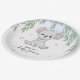 Paper Plate for baby shower, decorated with a cute illustration of a koala and eucolyptus leaves.