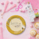 Party paper plate shown in a lovely champagne and mellow yellow colour with a love swans print design.