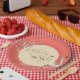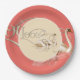 Party paper plate shown in a lovely Coral and champagne colour with a love swans print design.