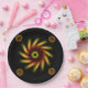 Pinwheel fireworks. Large yellow and red pinwheel centred on a black background. Four smaller pinwheels circle about the edge of plate. Change look by altering background colour. ***Part of coordinated set - BKM1f.