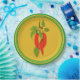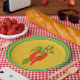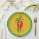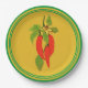 Hot chilli peppers on mustard background. Mexican style. Perfect for party where Mexican food is served. Three border green rings.  Chilli peppers with green leaves on vine with small flower.