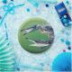 This paper plate features a large blue crab on the front.