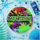 Fun paint splatter design for your Bat Mitzvah celebration. Bright colours of green, pink, blue, red, purple and orange.