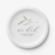 These paper plates feature a sprig of winter botanical greenery. The words "we did" appear in trendy modern script typography. Use the template fields to add your custom greeting, names and wedding date. An elegant choice for rustic weddings.