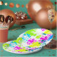 Fun paint splatter design for most any celebration. Great for kids of all ages. Bright colours of green, pink, blue, red and orange.