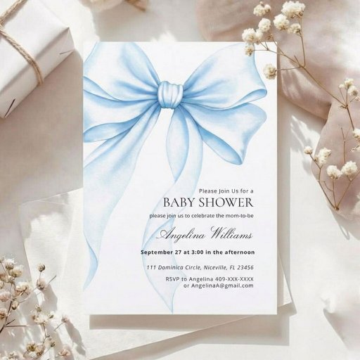 Elegant Baby Shower Blue Bow. Designed by Ekaterina Antonova