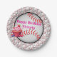 Paper Plates, Pink White Stripe Birthday Baseball Plate