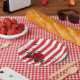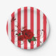 Paper Plates, Red & White Stripe Red Rose Floral Plate