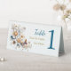 Pretty 3d paper quilling effect flowers and butterfly wedding table number tents. These beautiful wedding table top tent number cards are elegant with a touch of whimsy. Edit your names and wedding date information in the personalise area. Colours are mostly white and gold with a touch of blue.