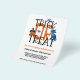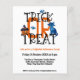 A great value PAPER (not card) alternative WITHOUT ENVELOPES at SMALLER size 4.5” x 5.6” and at a budget price. (Standard A6 envelopes are the nearest size to fit). Artsy Script Trick Or Treat Halloween Party Invitation. Invite your friends to a Trick Or Treat Halloween Party with this eerie invitation! The main header typography is set in orange and black and in a funky script adorned with spider web motifs and a pumpkin in a witches hat, cat, and bats add to the spookiness! The text with the details can be easily personalised, and you can also change the colour of this text and the background colours on the front and back via the Click to Customise Further option if you so wish.