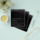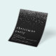 A great value PAPER (not card) alternative WITHOUT ENVELOPES at SMALLER size 4.5” x 5.6” and at a budget price. (Standard A6 envelopes are the nearest size to fit). Paper Silver Glitter Confetti Christmas Party Black Invite. The header is large in stylish lowercase with the details beneath. Lots of space for a contemporary feel and a border of confetti style silver glitter at the top on both sides. Easily personalise the text to your own details.