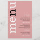 PAPER Dusty Rose Typography Wedding Menu. Great value PAPER (not card) alternative in size 5.5” x 8.5”. A modern typography design with Menu in large typography in white with the ”n” in black rotated and to the left hand side on a background of dusty rose pink.