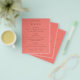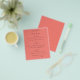 Simple Text Coral Rose Pink Wedding Menu. A great value PAPER (not card) alternative WITHOUT ENVELOPES at SMALLER size 4.5” x 5.6” and at a budget price. You can also change the font style and colors and the background colors on the front and back if you wish via the Click to Customize Further option.