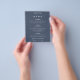 PAPER Simple Text Dusty Navy Blue Wedding Menu. A great value PAPER (not card) alternative size 4.5” x 5.6”. Fully customisable, you can also change the font style and colours and the enchanted Dusty blue background colours on the front and back if you wish via the Click to Customise Further option.