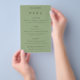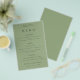 Simple Typography Sage Green Wedding Menu. A great value PAPER (not card) alternative WITHOUT ENVELOPES at a budget price. You can also change the font style and colours and the background colours on the front and back if you wish via the Click to Customise Further option.