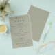 Simple Typography Soft Sage Wedding Menu. A great value PAPER (not card) alternative WITHOUT ENVELOPES at a budget price. You can also change the font style and colours and the background colours on the front and back if you wish via the Click to Customise Further option.
