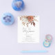 A great value PAPER (not card) alternative WITHOUT ENVELOPES at SMALLER size 4.5” x 5.6” and at a budget price. (Standard A6 envelopes are the nearest size to fit) PAPER Terracotta Florals Baby Shower Invitation. Beautiful autumn flowers for your gender neutral shower with a set handwritten script for Baby Shower and the rest of the text you can easily personalise.