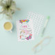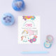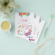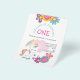 A great value PAPER (not card) alternative WITHOUT ENVELOPES at SMALLER size 4.5” x 5.6” and at a budget price. (Standard A6 envelopes are the nearest size to fit). For when you can't get together to celebrate in person, an online party is the next best thing. Here is a cute unicorn themed design for your little girl's Virtual First Birthday Party, along with colorful simplistic florals in shades of pink, teal and yellow. All of the text can be easily personalised to your own details. On the back, the background is white with teal stars. You can make further changes if you wish via the customise further option, to font styles and colors, and also the background colors.