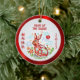 “Happy New Year” red foil typography in Chinese and a stunning visual of a graphic multi colour cut paper rabbit with flowers, clouds and stars, overlay a traditional light grey circle pattern and brushed red foil border. Customise the year for another “Year of the Rabbit” year if you wish and personalise with your name or custom message on the back. Feel the warmth and joy of the holiday season whenever you use this stylish yet modern, personalised 2023 Chinese New Year of the Rabbit ornament. Choose from a round or a square shape, in ceramic, metal or glass. Make this Chinese New Year one to remember!