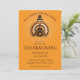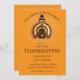 Fun invitation with a pilgrim turkey papercut on a bright orange background.