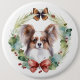 Papillon Christmas Wreath Festive Pup 6 Cm Round Badge