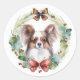 Papillon Christmas Wreath Festive Pup Classic Round Sticker