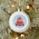 Papillon Dog In Car With Santa Claus Ceramic Ball Christmas Ornament