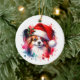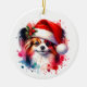 Papillon Dog in Santa Hat Christmas Personalised Ceramic Ornament