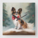 Papillon Dog in Snow Christmas Square Wall Clock