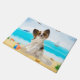 Cute dog sitting on beach is a perfect gift idea for someone who love this dog breed.