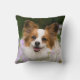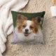 A White and Red Papillon dog portrait in a meadow surrounded by Cuckooflower. The Papillon is an alert, friendly and very smart toy breed. This little lovely doggy photograph was taken by Katho Menden, this pet photo fabric print on a smooth square polyester throw pillow is an enchanting special gift idea for doglovers. http://www.zazzle.com/kathom_photo