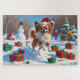 Papillon Dog Running in Snow with Christmas Hat Jigsaw Puzzle