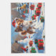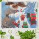 Papillon Dog Running in Snow with Christmas Hat Tea Towel