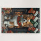 Papillon Dog With Christmas Gifts Fireplace Jigsaw Puzzle
