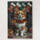 Add some holiday cheer with this charming design featuring a kawaii-style dog in a cosy sweater. Sitting joyfully by a fireplace adorned with stockings, the scene is complete with colourful presents and garlands, bringing warmth and festive vibes. The soft, playful colours capture the cosiness of the holiday season, making it a delightful way to celebrate the holidays with a joyful pup at the heart of the scene.