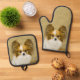 Papillon Painting Lemon and White Original Dog Art Oven Mitt & Pot Holder Set