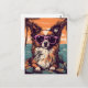 Colourful graphic art design of a papillon at a tropical beach with palms. Awesome gift for Papillon owner and Papillon lover.