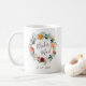 A chic gift for the best man, a mug featuring a watercolor floral wreath of gorgeous palette of burgundy, gold, coral, blush and leafy greens with "bridesmaid" inscribed inside in hand lettered script. Personalise with your wedding date beneath. Designed to match our Paprika burgundy floral collection.