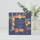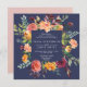 Wedding invitation matches our Paprika Burgundy Floral collection, featuring wedding details nestled inside a square surrounded by a gorgeous palette of burgundy, gold, coral, blush and leafy greens on a navy blue background. All text is fully customisable.