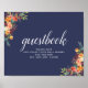 Designed to match our Paprika Burgundy Floral collection, this elegant floral sign lets guests know from where to pick up favours. Personalise with lines of custom text in calligraphy script lettering framed by corner bouquets featuring a gorgeous palette of burgundy, gold, coral, blush and leafy greens pn a navy blue background.