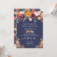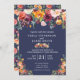 Wedding invitation matches our Paprika Burgundy Floral collection, featuring a watercolor floral drop of gorgeous palette of burgundy, gold, coral, blush and leafy greens framing wedding invitation details with a navy blue background. All text is fully customisable.