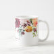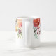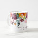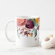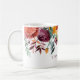 Paprika Burgundy Floral wedding mug featuring a watercolor floral wreath of gorgeous palette of burgundy, gold, coral, blush and leafy greens with "bride & groom" inscribed inside in hand lettered script. Personalise with your wedding date beneath. Designed to match our Paprika burgundy floral collection.