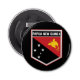 The national flag of Papua New Guinea is infused into a shield shape with the country name added above the flag.